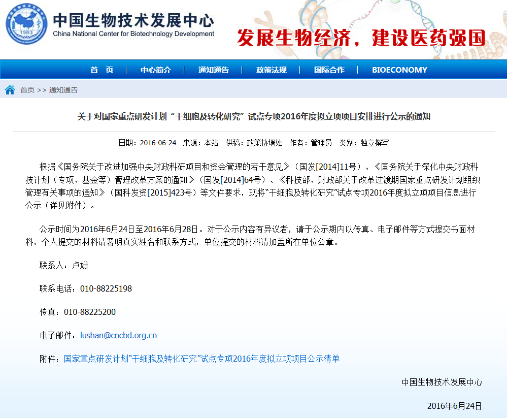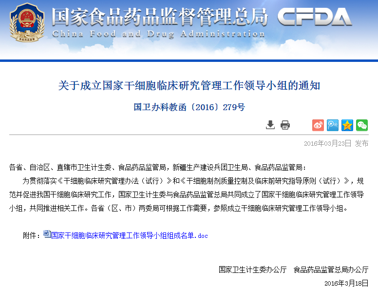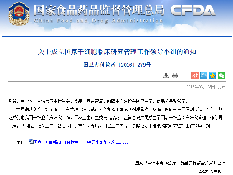 按照《干細胞臨床研究管理辦法(試行)》要求,國家干細胞臨床研究專家委員會對各地報送的干細胞臨床研究機構(gòu)備案材料進行了審核,根據(jù)專家委員會意見,形成了干細胞臨床研究機構(gòu)首批通過備案的建議名單(見附件)。 從即日起至2016年6月8日對擬備案機構(gòu)進…